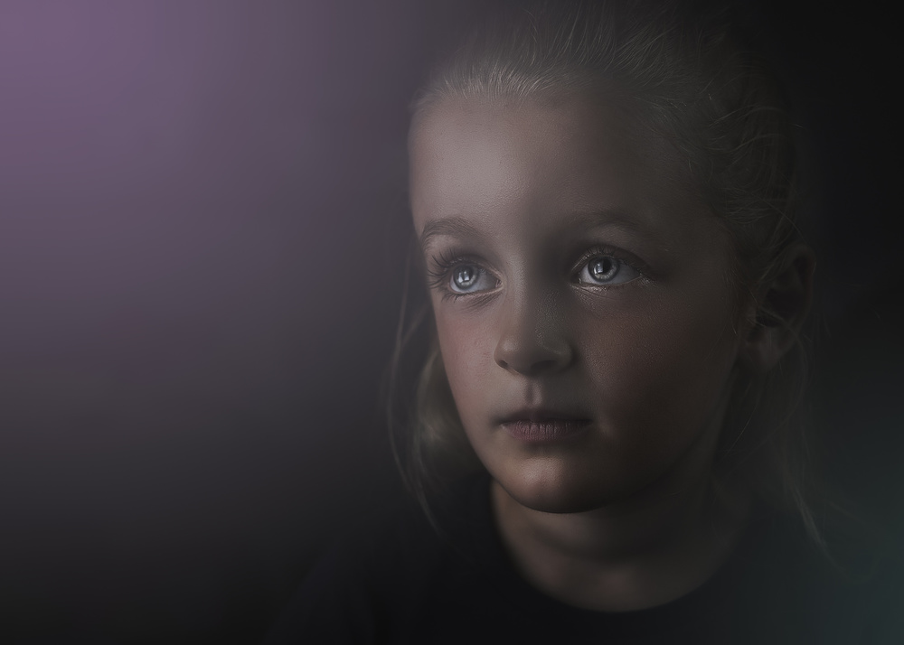 The picture is nice, I like the pose, the eyes, the light (except maybe a little on the forehead), the shadows and the effect of dissolution. The girl is indeed not “anywhere”, she is floating in a kind of cloud. Therefore, the title is very adequate. The only suggestion (in my subjective and personal opinion) could be that the lila color on the left is too intense.